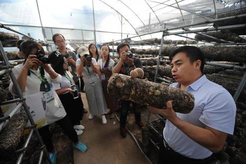 网媒记者逛进万荣香菇园 水果大县又兴“朝阳产业”